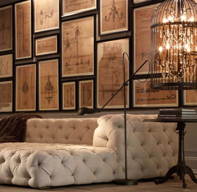 Has anyone noticed these steampunky light fixtures from Restoration Hardware? I received a 5 lb catalogue in the mail last week and the chandeliers and lamps are just too amazing not to share. I would totally buy them if I had an extra $10k lying around and just hang them from random spots throughout my apartment. Actually, a lot of Restoration Hardware's latest collection has a very steampunk vibe, with desks crafted out of steamer trunks and cast iron barstools. The TV easel, shown below, is also very unique and quite impressive if you see it in person.